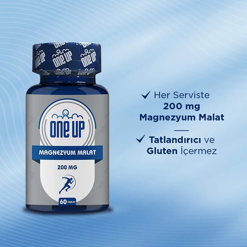 One Up Magnezyum Malat 60 Tablet, her servisinde 200 mg malat formunda magnezyum desteği sunar.
